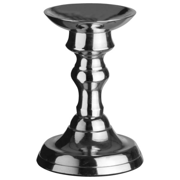 Svijećnjak sa vanvremenskim dizajnom. Sa širokom bazom za stabilnost i zaštitu od kapanja - garantovano će vam stolovi biti čisti! Sa neklizajućom gumom na dnu. Može se koristiti za zašiljene svijeće i svijeće dimenzija à ̃ 5 cm (najmanja veličina) do 7,6 cm. Materijal: aluminijum.