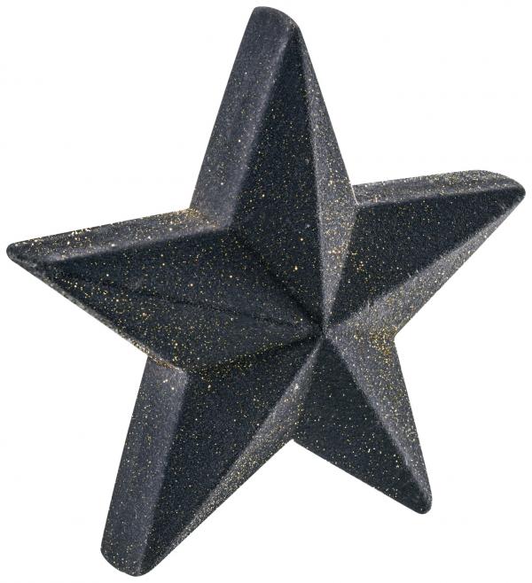 Drvena dekorativna zvijezda sa baršunastim premazom i šljokicama.