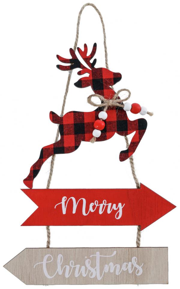Viseći ukras u obliku jelena napravljen od drveta.