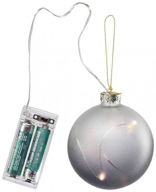 Lakirana staklena kugla sa LED osvjetljenjem i elegantnim gradijentom boja. Isporučuje se bez baterija.