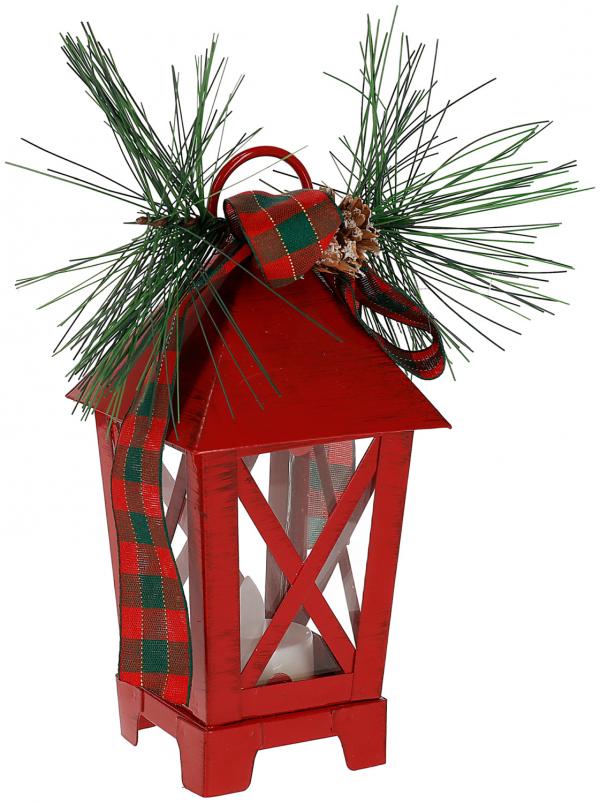 Sa dekoracijom božićne jele. Napravljen od metala i plastike. Pogodno za unutrašnju upotrebu. Isporuka uključujući LED tealight.