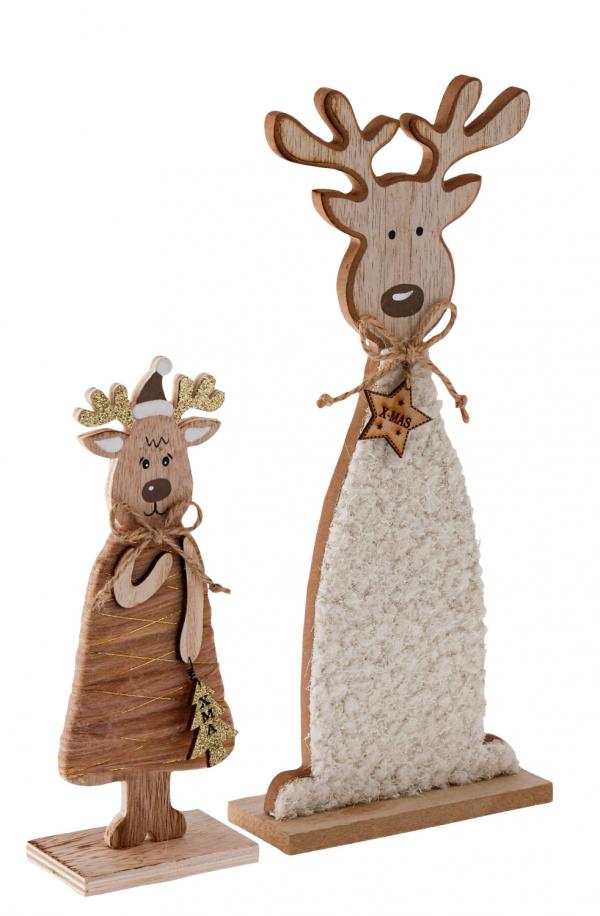 Božićni irvasi napravljeni od drveta i tekstila u dvije veličine. 8x5x21 cm i 13x5x31 cm.