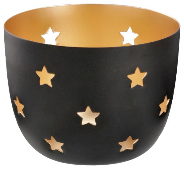 Držač za čajne svetiljke sa zvezdastim izrezima od lakiranog metala.