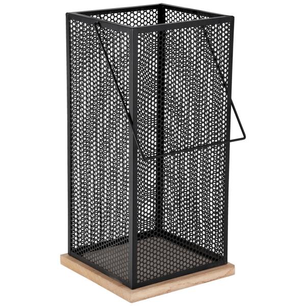 Moderan i jednostavan fenjer napravljen od metala sa drvenom bazom. Za unutrašnju i spoljašnju upotrebu.