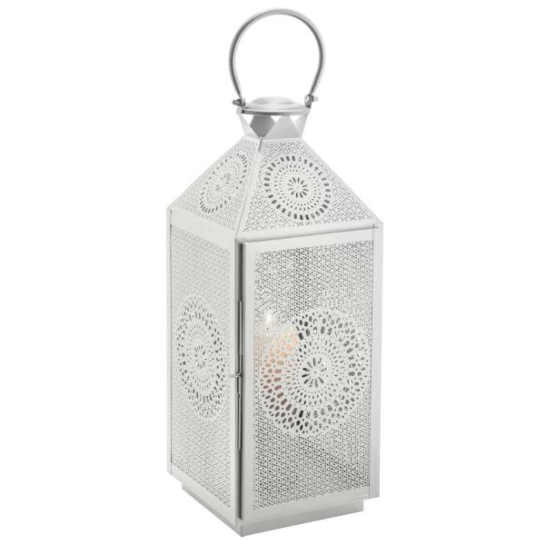 Orijentalni fenjer sa vintage detaljima. Isječeni dizajn u metalu stvara izuzetnu atmosferu osvjetljenja. Jednostavna vrata za jednostavnu upotrebu. Takođe je idealan za LED svijeće. Materijal: metal. Pogodno za upotrebu u zatvorenom i u zaštićenim vanjskim područjima.