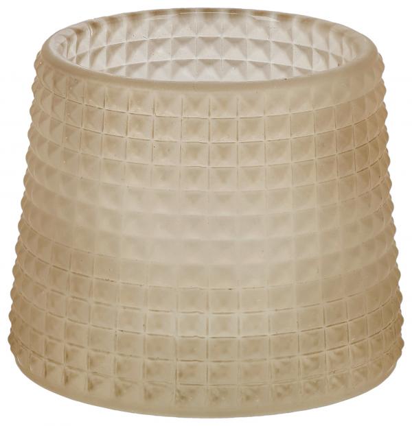 Stakleni držač za svijeću sa reljefom. Nije pogodno za mašinu za pranje sudova.