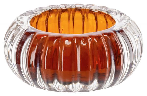 Svijećnjak napravljen od lakiranog stakla sa reljefnom dekoracijom.