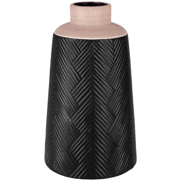 Oslikana kamena vaza u crnoj boji sa prekrasnim užurbanim dizajnom na vanjskoj površini. Vaza je takođe obojena iznutra i samim tim vodootporna.