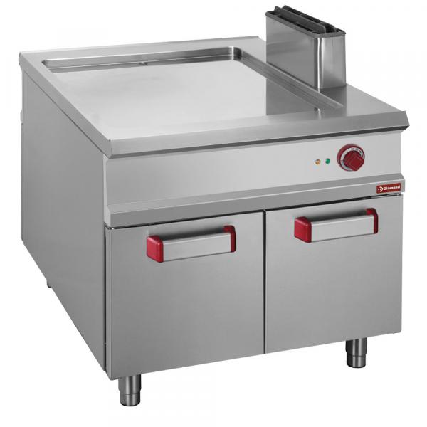 Ploča za kuvanje od livenog gvožđa (15 mm) visoke toplotne provodljivosti, nagnuta napred i opremljena ivicom protiv prskanja na 3 zavarene strane (3 mm) od nerđajućeg čelika, savršeno vodootporna. Prednja sabirna posuda za rekuperaciju tečnosti za pečenje.