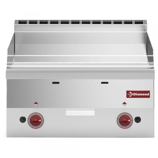 Ploča za kuvanje od livenog gvožđa visoke toplotne provodljivosti, opremljena zavarenim obodom koji garantuje savršeno zaptivanje. Na prednjoj ploči ispred uređaja nalazi se fioka za sakupljanje sokova od kuvanja.