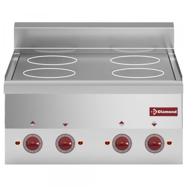 Staklokeramički sa infracrvenim zračećim zonama za kuvanje, sistem staklokeramičkih ploča za kuvanje karakteriše brzo zagrevanje grejača i njihovo hlađenje nakon upotrebe. Snaga grejanja se reguliše stepenastim regulatorom energije za svaku zonu za kuvanje.