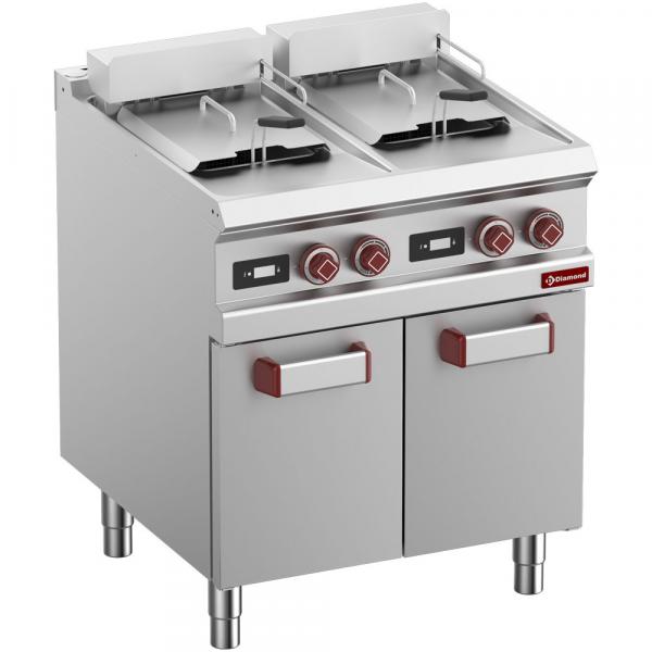 Električno grejanje pomoću oklopnih otpornika od nerđajućeg čelika uronjenih u rezervoar. Okretanje bloka grejnog elementa za lako čišćenje rezervoara, regulacija temperature od 100° do 190°C pomoću termostata, sigurnosni termostat kao standard, prednji pristup za lako održavanje.