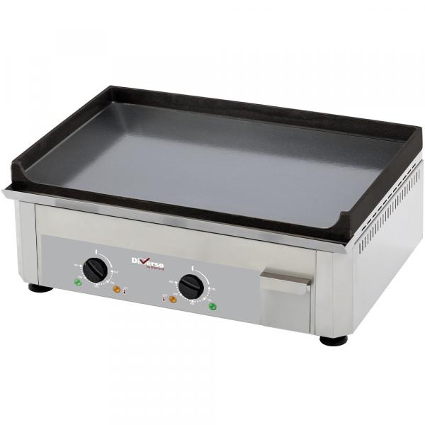 Površina za kuvanje: 600x400 mm (2 nezavisne oblasti). 2 spiralna otpornika, 0-300°C termostati sa on/off pozicijom, 2 indikatora napajanja, 2 termostatska indikatora. Ploča (20 mm debljine), emajlirana površina za kuvanje, hrana (NF 12983-1), savršeno homogeno kuvanje zahvaljujući spiralnim ´Incoloi´ otpornicima za električnu verziju i zvezdastim gorionicima za gasnu verziju, brz porast temperature do 300°C. Lako i lako održavanje, zahvaljujući prednjem delu fioke, koja se u potpunosti može ukloniti. Izrađen od nerđajućeg čelika i ojačane izolacije. Podesivi cilindar(i). Uređaji izgrađeni u skladu sa standardima (CE) na snazi.
