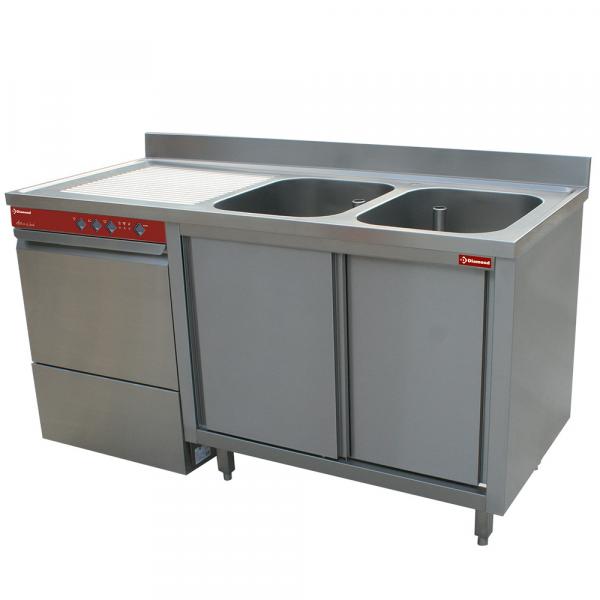 Sudoper 2 rezervoara 400x500xh275 leva odvodna daska na ormanu sa 2 klizna vrata i sa prostorom za mašinu za pranje sudova
