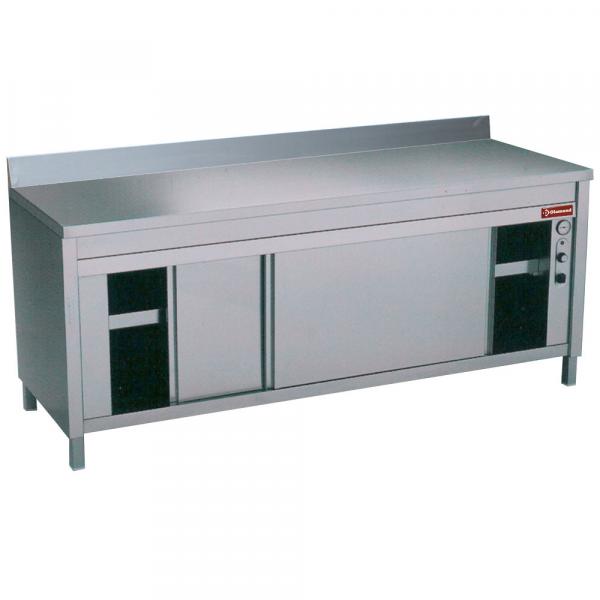 Proizvedeno od nerđajućeg čelika AISI 304 (tip ´Scotch Brite´ završetak). Zvučno izolovana i ojačana radna površina. Uklonjiva, podesiva i ojačana srednja polica. Povratak nagnut za 85 mm. Klizna vrata sa integrisanim ručkama. Ventilacija sa termostatskom regulacijom. Stalci od nerđajućeg čelika sa podesivim dizalicama od nerđajućeg čelika.