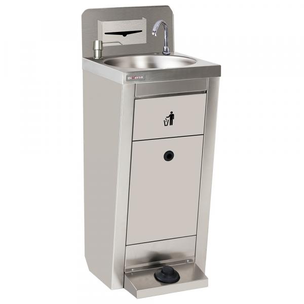 Okrugli umivaonik prečnika 350 mm, sa dozatorom sapuna (rezervoar dostupan sa zadnje strane) i fiksnom zadnjom ivicom sa dozatorom za papirne ubruse.