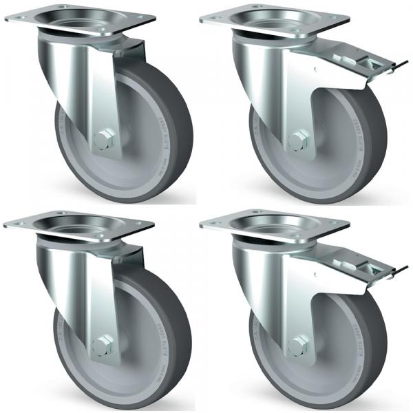 Komplet 4 točkića od nerđajućeg čelika, okretni, 2 sa kočnicama