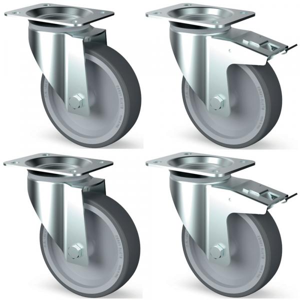 Komplet 4 točkića od nerđajućeg čelika, okretni, 2 sa kočnicama