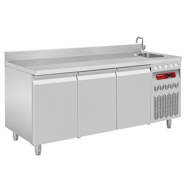 Sudoper 340x400x200mm integrisan u radnu ploču (desna strana), isporučuje se sa sifonom; odvodna mreža i preliv (napomena: slavina na zahtev, otvor na radnoj površini (27 mm)).