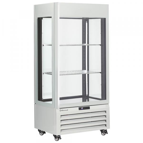 Napravljen od belog lakiranog čelika sa punim staklenim vratima sa belom sito štampom.