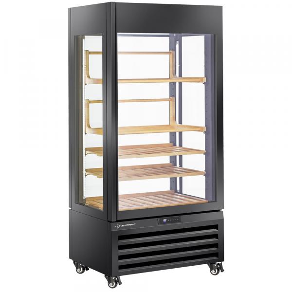 Vitrina za vino sa staklom sa 4 strane, 600L, 1 nivo + 2 police, Crna