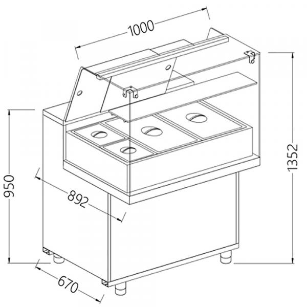 - Visina zavarenog rezervoara 240mm (GN-h150 mm), ručno pražnjenje.