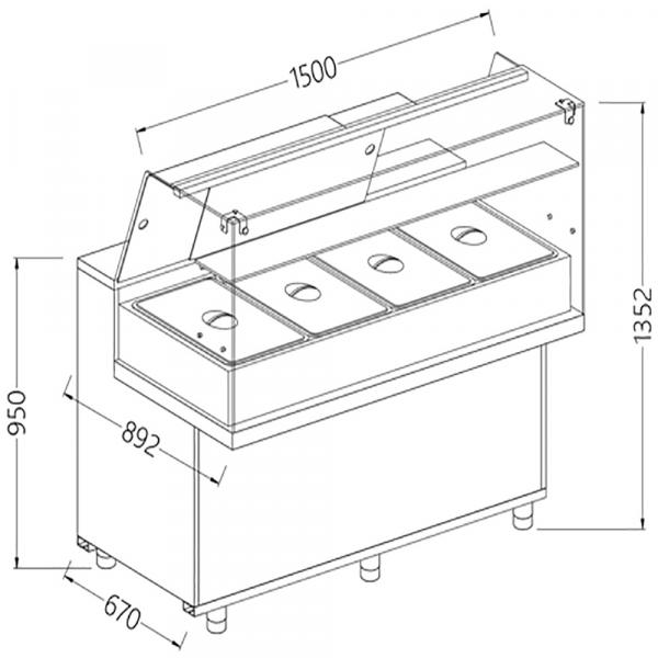 - Visina zavarenog rezervoara 240mm (GN-h150 mm), ručno pražnjenje.