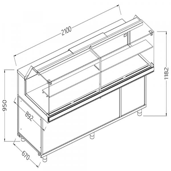 Vitrina za tople i suve užine _nisko staklo, sa jedinicom, sa rezervom