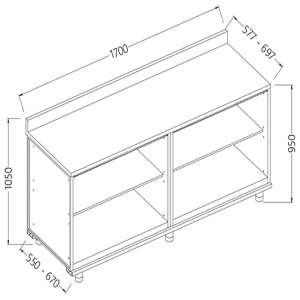 mm (W x D x H) 1700 x 695 x 950/1162