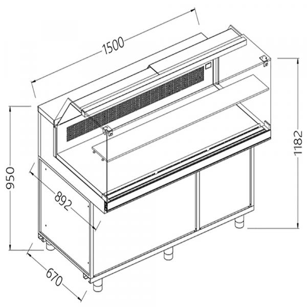 Rashladna vitrina statička za zakusku, nisko staklo, jedinica na daljinu, sa rezervom
