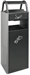 Elegantna i funkcionalna pokrivena kanta za otpatke sa pepeljarom i poklopcem, u potpunosti izrađena od pocinkovanog, crno obojenog čelika. Pure ima bočne rupe za gašenje cigareta. Obloga za smeće se ubacuje kroz prsten njegovog držača. Kanta za smeće ima uklonjivu tacnu za sakupljanje opušaka. Držač za cigarete se lako može ukloniti i isprazniti. Uključuje aluminijski kompozitni piktogram sa simbolima "kanta za smeće" i "pepeljara", 1 kg pijeska za pepeljaru i 1 ključ. Korpa je visine 102 cm i kapaciteta 60 l.