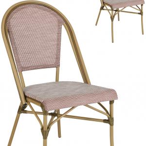 Sa svojim otpornim na vremenske uslove aluminijumskim okvirom i pletenim plastičnim sedištem i naslonom, stolica je vizuelno privlačna i izdržljiva.