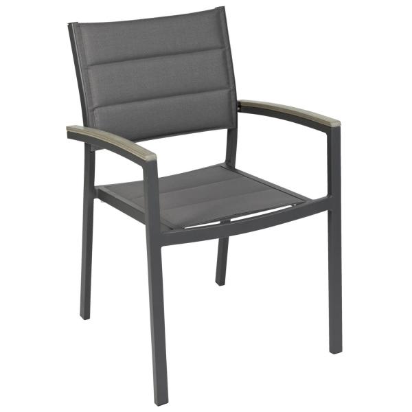 Stolica otporna na vremenske uslove. Njen okvir izrađen od čvrstog aluminijuma je opciono obložen optičkim ili antrakitom od nerđajućeg čelika. Posebna prednost je udobna podloga napravljena od izdržljivog i jednostavnog tekstilnog materijala i pjene koja se brzo suši. Laka za održavanje.