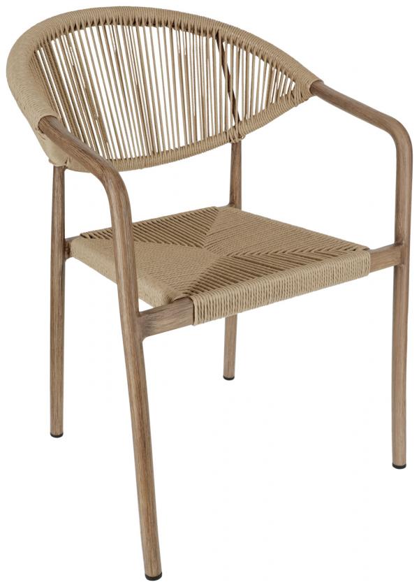 Čvrst aluminijski okvir u modernom drvenom izgledu daje profesionalan izgled, dok robusna Rope presvlaka od poliestera podnosi i najzahtjevnije uvjete svakodnevnog ugostiteljstva. Stolica je otporna na vremenske uvjete, UV zračenje i brzo se suši – idealna za vanjske prostore koji se često čiste ili koriste u svim vremenskim uvjetima.