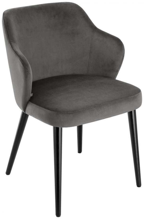 Kvalitetna i elegantna tapacirana stolica sa somot tkaninom i crno lakiranim nogama od bukve. Velikodušna presvlaka obezbeđuje udobno sedenje. Vatrootporni poklopac. Pogodno samo za unutrašnju upotrebu. Isporučuje se sastavljeno, uklj. plastični klizi.
