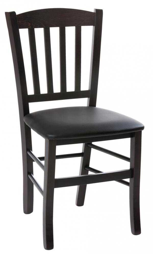 Drvena stolica napravljena od čvrstog bukovog drveta, obojena i lakirana. Sa mekanim tapacirajućim kožnim sjedištem.