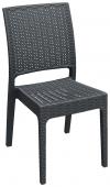 Otporna na vremenske uslove, lagana stolica napravljena od plastične mreže otporne na UV zrake. Okvir izrađen od aluminijuma obloženog prahom. Visoki naslon za leđa. Uključuje aluminijumske donje kape sa plastičnim klizištima. Boja: crna.