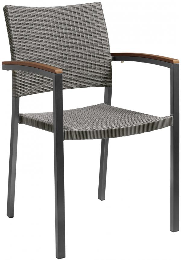 Stolica Vincent je izvanredna vanjska stolica sa modernim izgledom. Bistro stolica sa naslonima za ruke ima telo napravljeno od visoko stabilnog i laganog aluminijuma obloženog prahom i govori jasan dizajnerski jezik, koji se savršeno uklapa u elegantan, moderan ambijent. Sedište i naslon za leđa su napravljeni od visokokvalitetne plastične mreže. Naslon za ruke ima sofisticiranu polidrvenu oblogu. Stolica za ručavanje je otporna na vremenske uslove, UV otporna i slagana. * Gastro stolica za vanjsku upotrebu * jednostavan, moderan stil * Prahom obložen aluminijumskim okvirom * sa udobnim i visoko-kvalitetan polietilenski pručić na sjedalu i leđima * Polidrvena obloga na naslonima za ruke * jednostavna za čišćenje, vrijeme i UV otporna * Slagati do pet stolica Sa stolicom za slaganje Vincent dobijate stilski, jednostavni hvatač očiju u vašem gastro-Spoljašnji prostor, koji u bljesku priziva udoban karakter salona. Za još veću udobnost sedenja, Alu stolica može biti opremljena odgovarajućim jastucima za sedišta. Čvrsta i izdržljiva metalna stolica otporna je na vremenske uslove i UV otporna i oduševiće vaše goste više od samo jedne sezone.