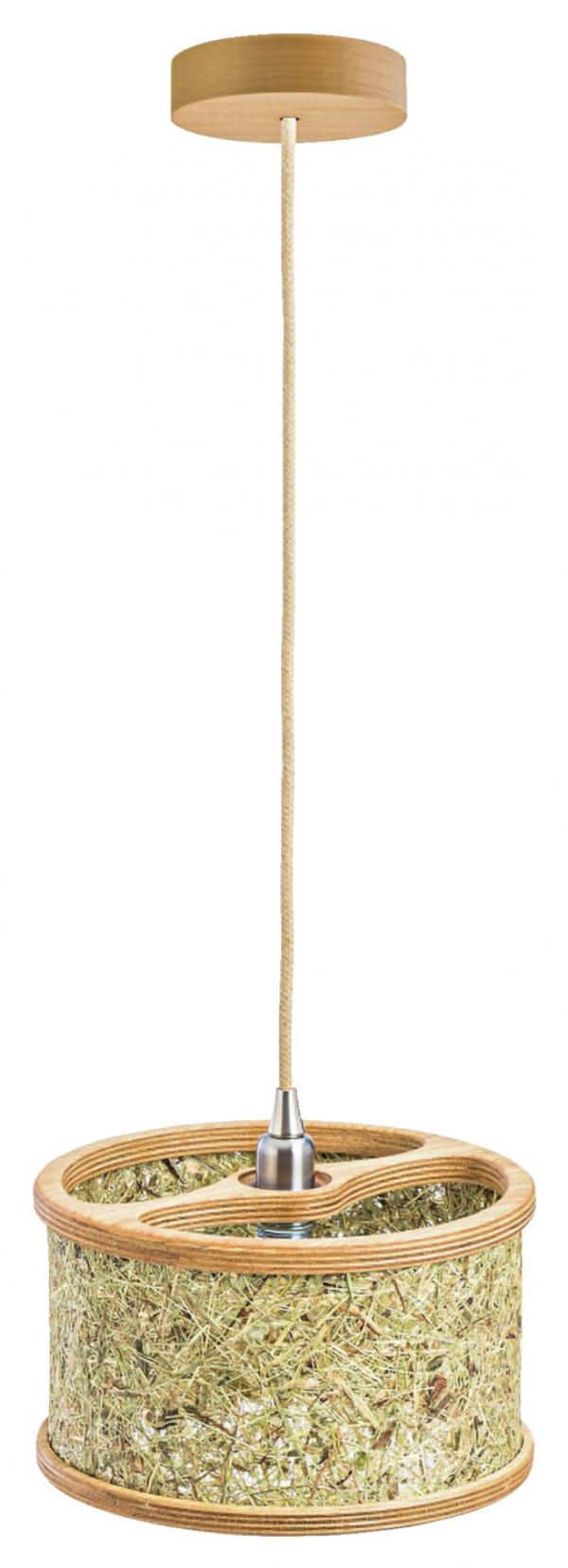 Lampa je izrađena od hrastovine i čistog alpskog sijena sa kablovima od jutenih vlakana.