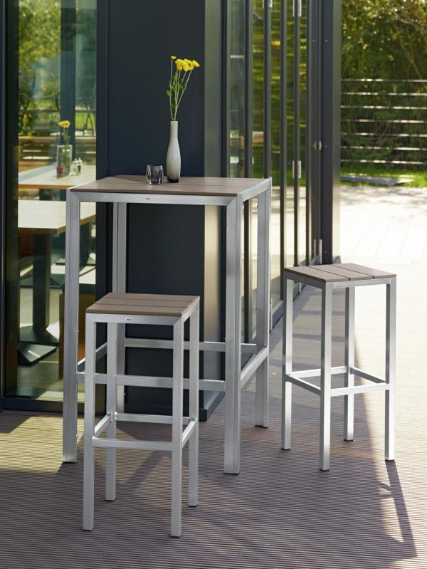 Sofisticirani set namještaja: Artless bar stol i dvije Artless barske stolice izrađene su od aluminija u izgledu od nerđajućeg čelika i visokokvalitetnih plastičnih ploča. Ovo čini barski sto i barske stolice UV i vremenske uslove otpornim i stoga savršenim za vaš spoljni prostor. Zbog posebnog premaza, plastične ploče su jednostavne za čišćenje i otporne na ogrebotine.