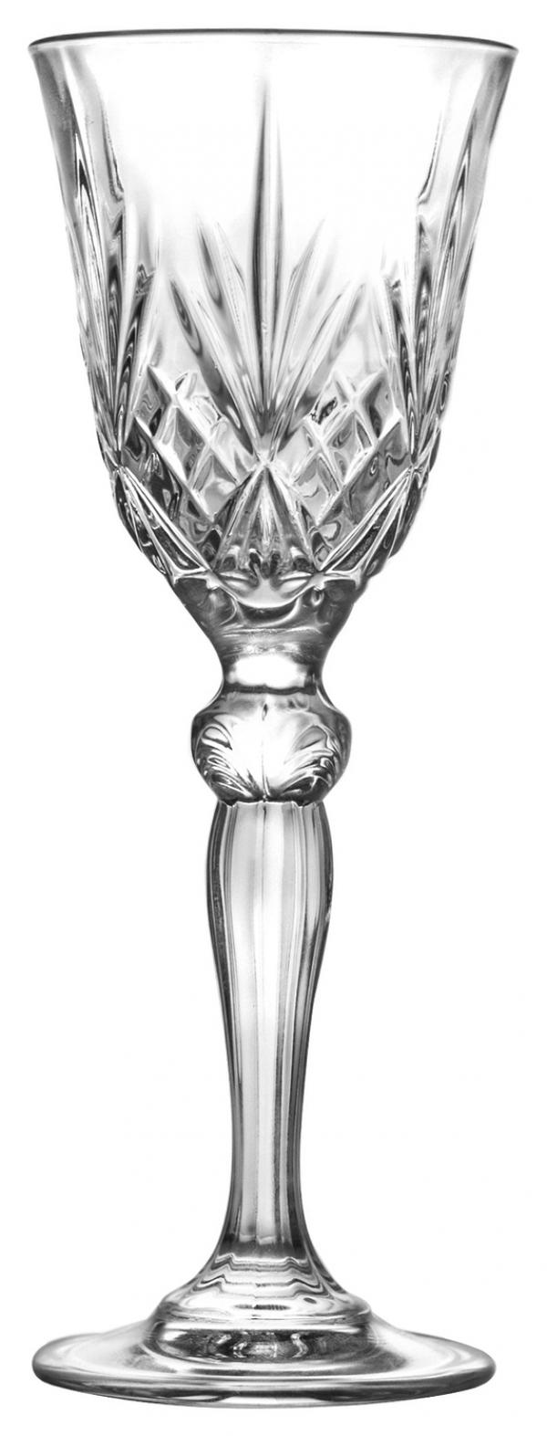 Digestivno staklo od kristalnog stakla sa rezanim izgledom. Može se prati u mašini za pranje sudova.