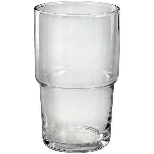 Duga čaša za piće od kaljenog stakla. Može se složiti i može se prati u mašini za sudove.