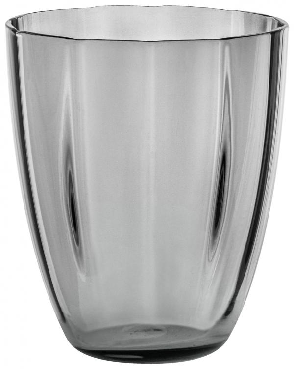 Univerzalna čaša sa modernim reljefom u stilizovanoj sivoj boji. Materijal: staklo, obojeno.