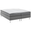 Proljetni krevet u praktičnom kompletu. Kutija sa bonnell spring core. Čvrsti drveni okvir. 7 zona džepnog proljetnog dušeka. Hladna pjena topper za udoban san. Bez uzglavlja. Srebrna čelična stopala. Visina za ulazak u krevet: 60 cm. Visina: Stopala 16 cm + kutija 22 cm + dušek 17 cm + topper 5 cm; Ukupna visina: 60 cm. Sa presvlakama tkanine. Dostupno kao jednokrevetni ili dupli krevet. Isporučuje se sa povezanim elementima. Dostupan u sivoj, svijetlosivoj i taupe boji.