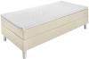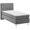 Proljetni krevet u praktičnom kompletu. Kutija sa džepnim oprugama. Čvrsti drveni okvir. 7 zona džepnog proljetnog dušeka. Gel pjena topper za udoban san. Klasična, ravna uzglavlja. Srebrna čelična stopala. Visina za ulazak u krevet: 69 cm. Visina: Stopala 16 cm + kutija 27 cm + dušek 21 cm + topper 5 cm; Ukupna visina: 69 cm Sa presvlakama tkanine. Dostupno kao jednokrevetni ili dupli krevet. Isporučuje se sa povezanim elementima. Dostupan u sivoj, antracit i taupe boji.