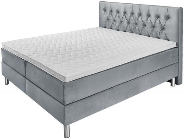 Proljetni krevet u praktičnom kompletu. Kutija sa džepnim oprugama. Čvrsti drveni okvir. 7 zona džepnog proljetnog dušeka. Gel pjena topper za udoban san. Uzglavlje sa klasičnim Chesterfield quiltingom. Srebrna čelična stopala. Visina za ulazak u krevet: 69 cm. Visina: Stopala 16 cm + kutija 27 cm + dušek 21 cm + topper 5 cm; Ukupna visina: 69 cm Sa velurovim pokrivačem. Dostupno kao jednokrevetni ili dupli krevet. Isporučuje se sa povezanim elementima. Dostupan u sivoj i tamnoplavoj boji.