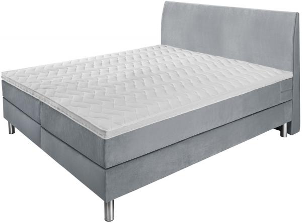 Proljetni krevet u praktičnom kompletu. Kutija sa džepnim oprugama. Čvrsti drveni okvir. 7 zona džepnog proljetnog dušeka. Gel pjena topper za udoban san. Klasična, ravna uzglavlja. Srebrna čelična stopala. Visina za ulazak u krevet: 69 cm Visina: Stopala 16 cm + kutija 27 cm + dušek 21 cm + topper 5 cm; Ukupna visina: 69 cm Sa velurovim pokrivačem. Dostupno kao jednokrevetni ili dupli krevet. Isporučuje se sa povezanim elementima. Dostupan u svijetlosivoj i tamnoplavoj boji.