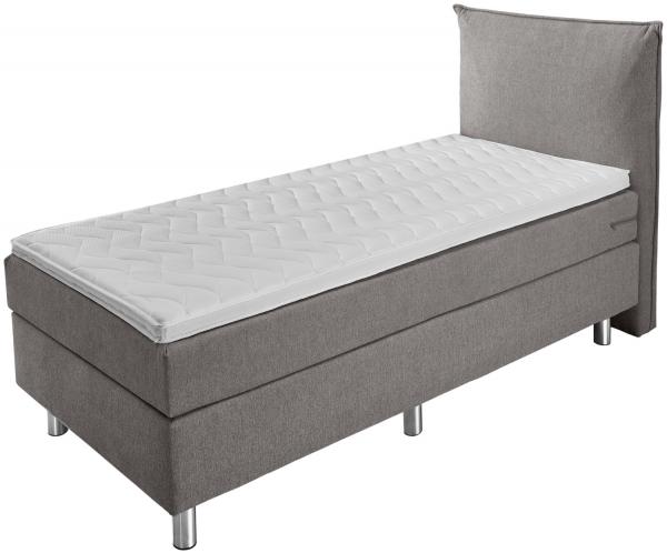 Proljetni krevet u praktičnom kompletu. Prazna kutija. Chipboard okvir. 5-zonski džepni proljetni madrac. Hladna pjena topper za udoban san. Uzglavlje sa podlogom. Srebrna čelična stopala. Visina za ulazak u krevet: 58 cm. Visina: Stopala 16 cm + kutija 20 cm + dušek 17 cm + topper 5 cm; Ukupna visina: 58 cm. Sa presvlakama tkanine. Dostupno kao jednokrevetni ili dupli krevet. Isporučuje se sa povezanim elementima. Dostupan u sivoj, svijetlosivoj i taupe boji.