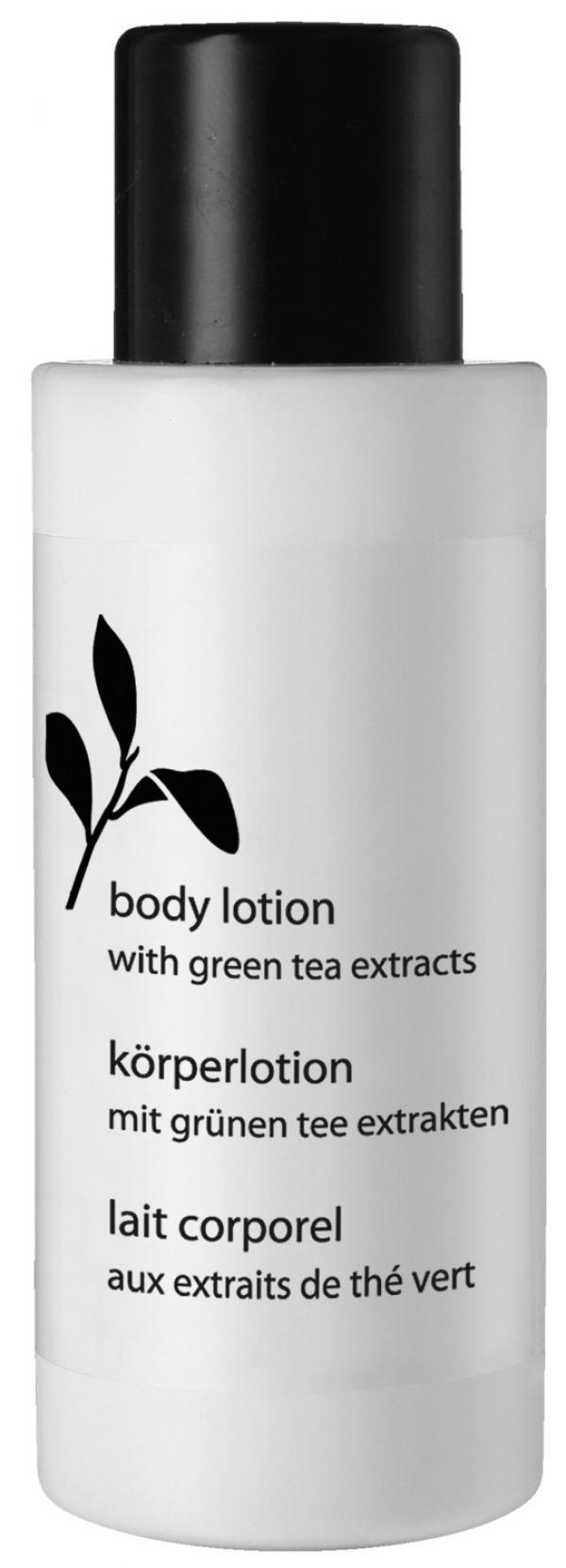 Delikatna mirisna kompozicija kreme daje dugotrajan osjećaj svježine. Losion za tijelo je napravljen od ekstrakta zelenog čaja koji djeluju umirujuće i opuštajuće. Idealno za vlaženje kože nakon kupanja ili tuširanja. Brzo se upija, ostavljajući kožu vaših gostiju mekom i glatkom što je prije moguće. Sa izvrsnom mirisnom kompozicijom limuna, bergamota, bosiljka, nane, đurđevka, bijelog bora, mošusa i sandalovine. Dermatološki testiran i pH neutralan. Isporučuje se u prozirnoj bočici od 45 ml sa poklopcem na navoj. Losion za tijelo nadopunjuje seriju hotelske kozmetike Green Tea, istovremeno odgovarajući gel za kupanje/tuširanje Green Tea.