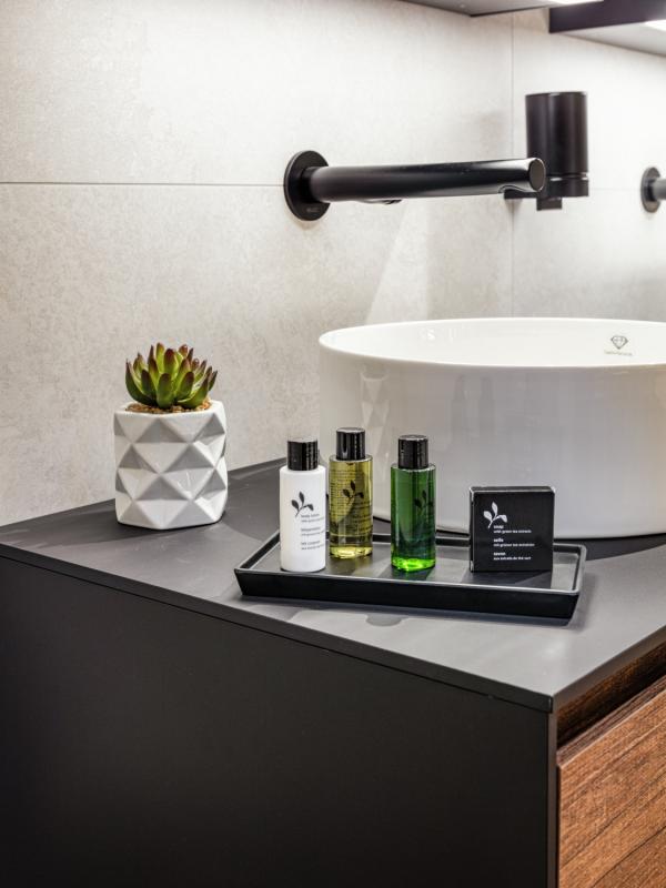 Svež, okrepljujući šampon Zeleni čaj. Šampon za negu nežno čisti i pogodan je za sve tipove kose. Obogaćen je ekstraktima zelenog čaja. Kombinovanim mirisom limuna, nane, bergamota i belog mošusa učiniće da se vaši gosti osećaju potpuno osveženo i razmaženo. Dermatološki testiran i pH neutralan. Šampon se isporučuje u providnim bočicama od 45 ml sa zatvaračem na navoj. U isto vreme naručite odgovarajuće sisteme za doziranje Zeleni čaj.
